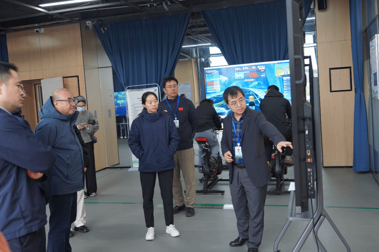 赵海峰详细介绍了江苏省数字水上运动研究中心的建设进展、赛艇数字训练系统的研发成果及其应用成效,并汇报了团队未来的研究方向。在调研现场,研发团队教师指导扬州自行车协会队员向考察团展示了数字化训练装备操作,以及自主研发的赛艇数字训练系统的运行情况,获得了高度评价。赵海峰表示团队自研的数字训练系统不仅可以加速赛艇训练科学化进程,提升运动员的竞技表现水平,还可以作为学校新设数字体育微专业的教学平台。系统运用数字孪生技术创造游戏化的比赛环境,可面向群众体育休闲健身的趣味性和娱乐性需求,增强水上运动对大众的吸引力,为推动江苏水上运动休闲消费高质量发展提供虚实结合的创新体验模式。