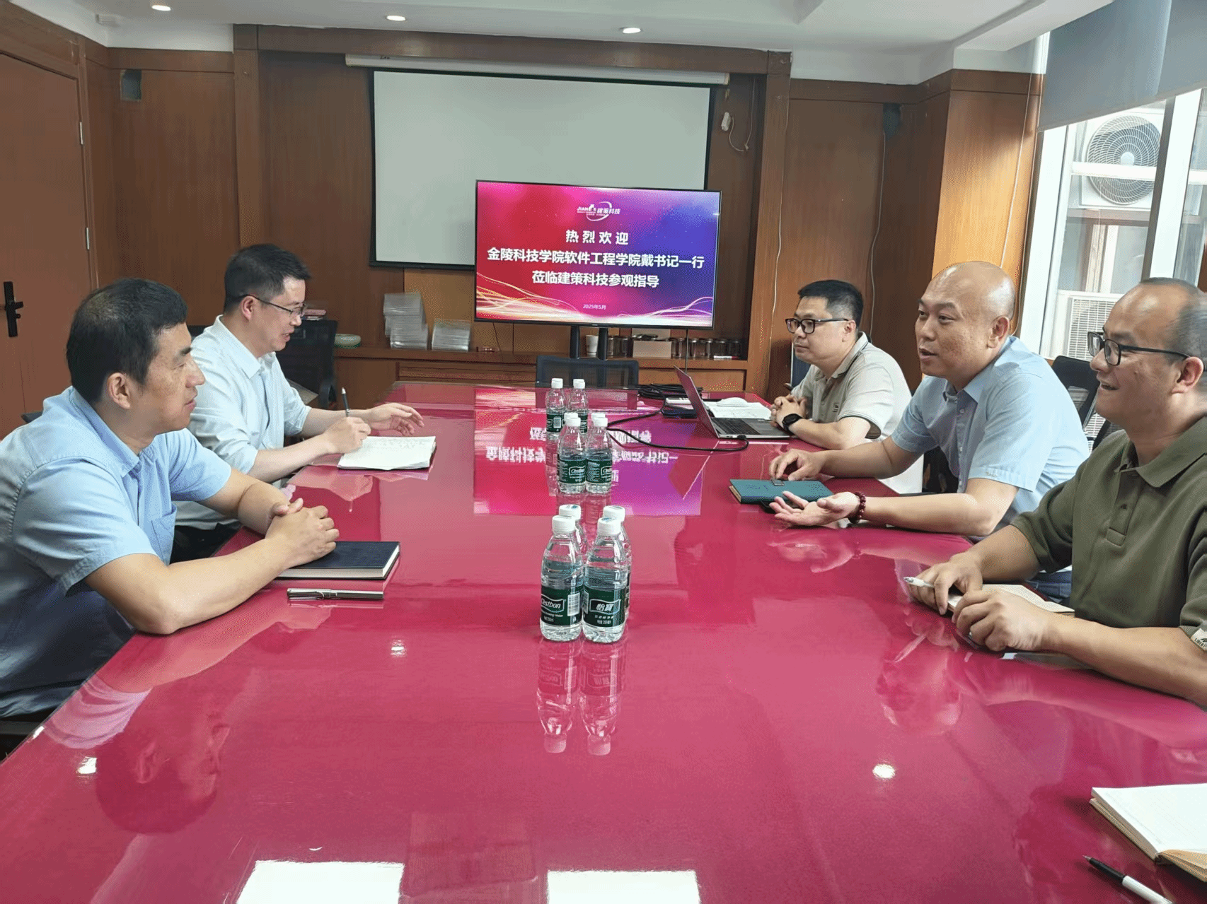 为深入贯彻落实教育部“访企拓岗促就业”专项行动部署,进一步拓宽毕业生就业渠道,强化校企协同育人机制。5月21日下午,888集团线上网站党委书记戴军、副书记徐斌等一行赴东一集团得塔云(南京)智能科技有限公司和南京建策科技股份有限公司进行了走访调研交流。得塔云智能科技有限公司总经理张佳鑫和建策科技股份有限公司董事长王继锋等企业高管热情接待了调研组。