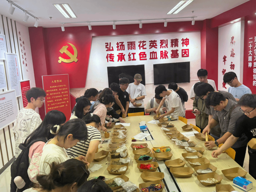 5月22日晚,科技楼雨花厅内洋溢着浓郁的节日氛围。悬挂的“端午安康”红色横幅与菖蒲装饰相映成趣,20余名电子信息专硕点的研究生齐聚一堂,参与由研究生会主办的“我们的节日·端午香囊制作活动。学院徐斌副书记亲临现场,与同学们共同体验非遗技艺。
