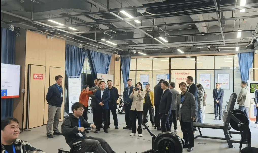 张燕重点汇报了研究中心建设概况、赛艇数字训练系统的研发与应用效果、以及2025年研究重点等三个方面内容。体育部吴畏教授汇报了如何应用赛艇陆上训练技术框架与动力链智能分析解决赛艇运动训练中的瓶颈问题。团队老师和研究生为参观考察的各位领导现场演示了数字化训练装备的使用和自主研发的赛艇数字训练系统运行效果,受到考察领导的一致好评。张燕表示,赛艇数字训练系统的研发与应用将加快推进赛艇运动训练的科学化,提升运动员的竞技表现。为响应江苏省发改委、江苏省体育局等10部门于2024年10月25日发布了《关于加快发展水上运动休闲消费的意见》,为加快推动江苏水上运动产业高质量发展,培养更多亲水消费新业态、新模式、新场景,有效满足人民群众日益增长的水上运动休闲消费需求,团队开发的数字化训练系统兼顾群众体育休闲的游戏性、娱乐性,通过数字孪生技术,利用游戏化的比赛场景,增加赛艇陆上训练的趣味性,为我省加快发展水上运动休闲消费提供一种虚实融合体验的新模式。