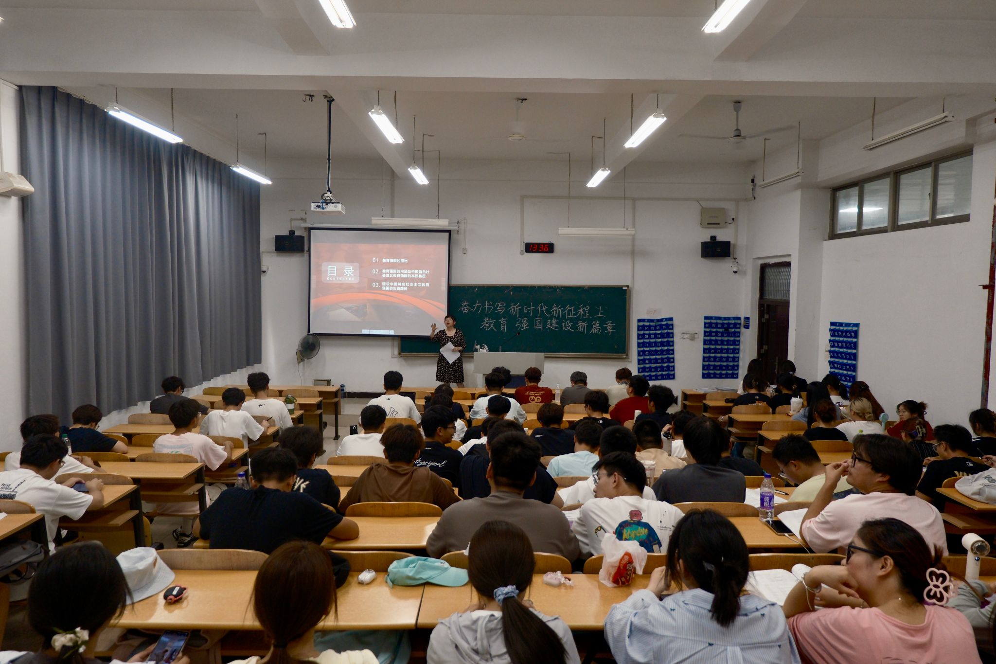 讲座伊始,张燕以提问形式引出讲座的三个核心部分——教育强国的提出、教育强国的内涵及中国特色社会主义教育强国的本质特征、建设中国特色社会主义教育强国的实践路径,迅速调动起同学们的参与热情与思考积极性。在“教育强国的提出”部分,张燕带领同学们以视频的形式回顾了习近平总书记在2024年全国教育大会上的重要讲话,并重点介绍了纲要部署9个方面重点任务,随后,她带领我们回顾了新时代教育实践的历史性成就、中国特色改革开放40多年的伟大教育变革、中华人民共和国75年的伟大教育实践、中国共产党百余年领导人民从教育弱国、教育大国到教育强国的辉煌历程。在阐述“中国特色社会主义教育强国的本质特征”时,张燕引用习近平在2024年全国教育大会上的重要论述,指出其应具备强大的思政引领力、人才竞争力、科技支撑力、民生保障力、社会协同力、国际影响力。她强调要走好人才培养之路,提高科技支撑力和民生保障力,并列举中国空间站、中国高铁等实例,彰显中国科技发展的迅猛态势。最后,在“建设中国特色社会主义教育强国的实践路径”部分,张燕强调要坚持社会主义办学方向,系统部署建设中国特色社会主义教育强国的重大举措。