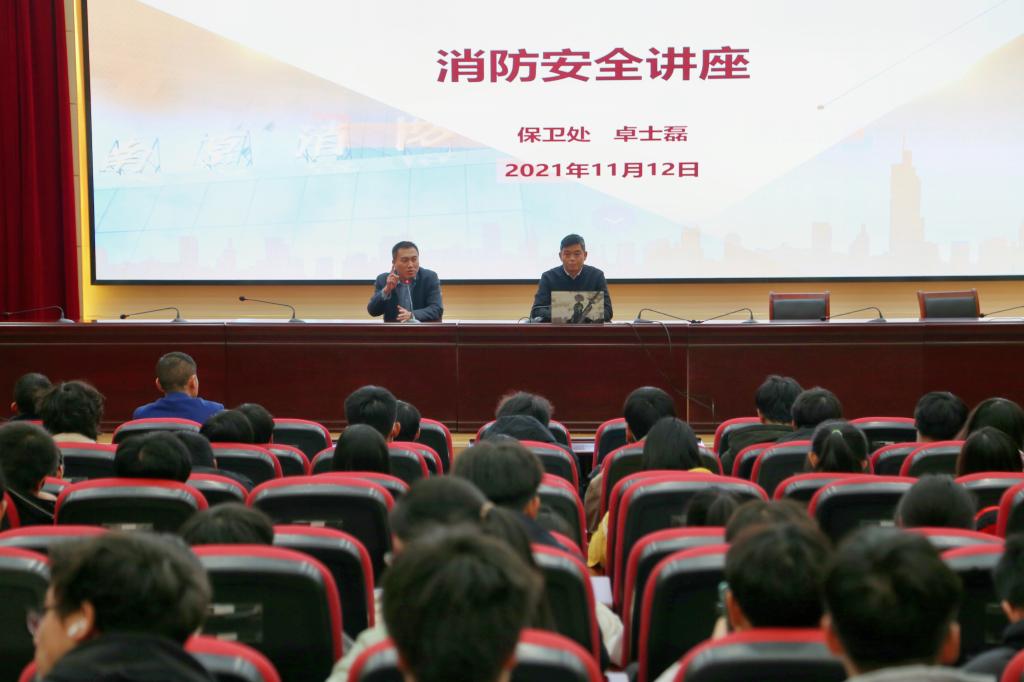 卓士磊副处长讲座中从消防安全基础知识、消防安全“四个能力”建设、消防安全标识、火场逃生等四个方面为同学们进行了详细的解读,通过具体的火灾案例向同学们介绍近年来高校火灾造成的人员伤亡和经济损失情况,讲解了安全用电的注意事项和火场逃生的正确方法,提醒同学们要注意用电安全。最后,他还结合我校的一些实际情况和同学们进行交流。