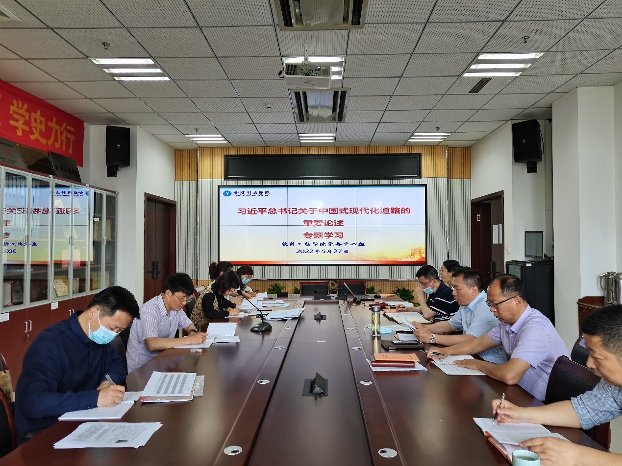 5月27日上午,888集团线上网站在科技楼325组织开展了中心组学习,专题学习了习近平总书记关于中国式现代化道路的重要论述,会议由学院党委书记徐志国主持,全体中心组成员参与了学习。