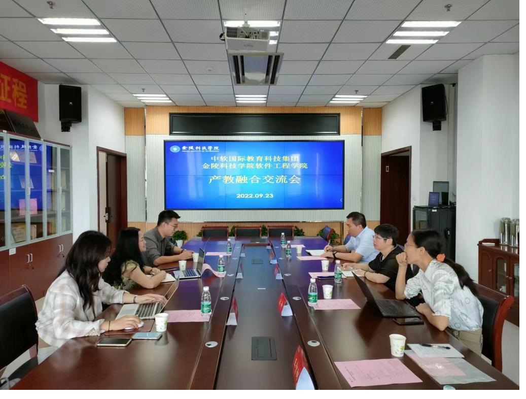 张燕副校长介绍了我校的基本情况,然后重点阐述了我校产业学院建设的新思路和新规划。成焕副总裁介绍了中软国际、中软国际教育科技集团的基本情况,以及与高校开展产教融合,进行深度合作的成功案例,并对我校的产业学院建设思路予以了高度肯定。