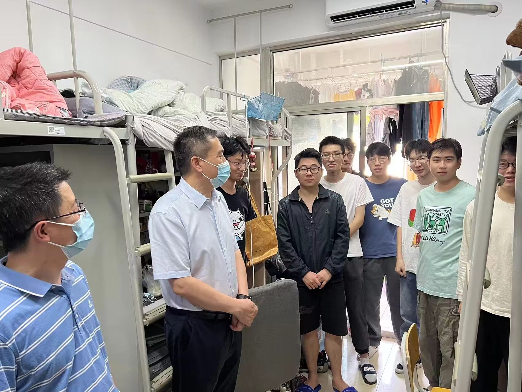 5月16日上午,软件学院党委书记徐志国、副书记徐斌深入2023届毕业生宿舍,了解即将离开母校的学生目前在校情况,为毕业生送上亲切的问候与诚挚的祝福。毕业班辅导员和班主任陪同走访。