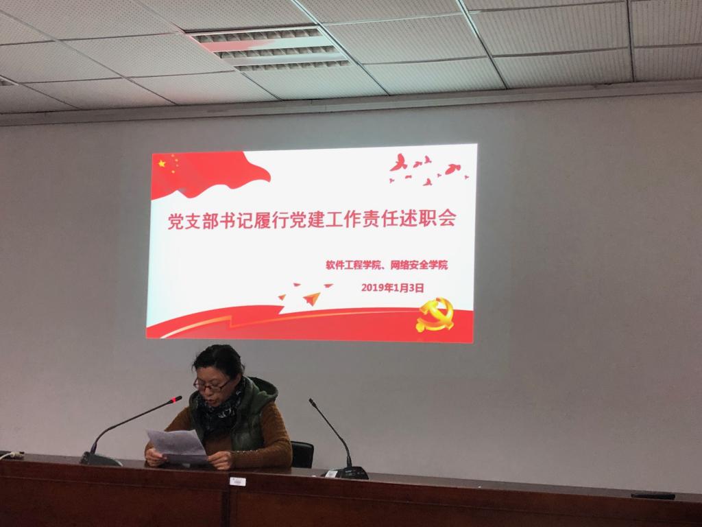 2019年1月3日上午,888集团线上网站、网络安全学院党委所辖师生党支部书记开展述职工作专题活动。学院全体党员参加此次支部书记述职报告会。王智钢、王爱侠、胡国兵、邵彦婷4位党支部书记依次上台做述职报告,学院指定专职组织员做好会议记录。