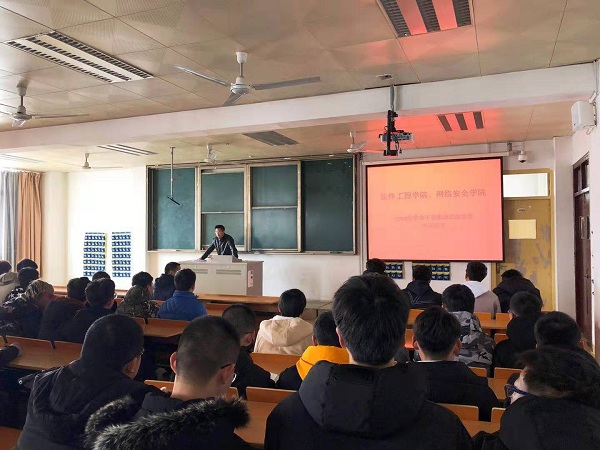 3月20日上午,888集团线上网站、网络安全学院在教学楼1232教室举办2018级学生干部思想政治专题教育活动,院党委副书记徐斌做主题报告,100余名2018级学生干部参加。