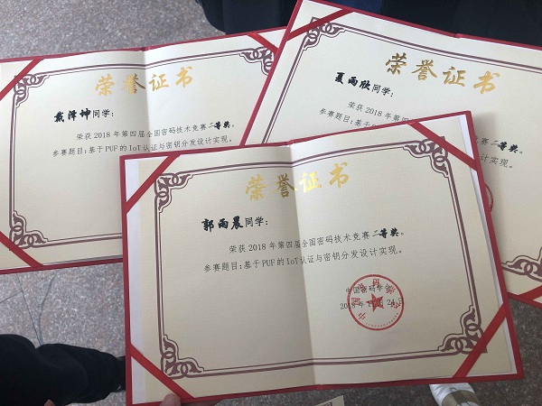 888集团线上网站、网络安全学院学生喜获第四届全国密码技术竞赛二等奖